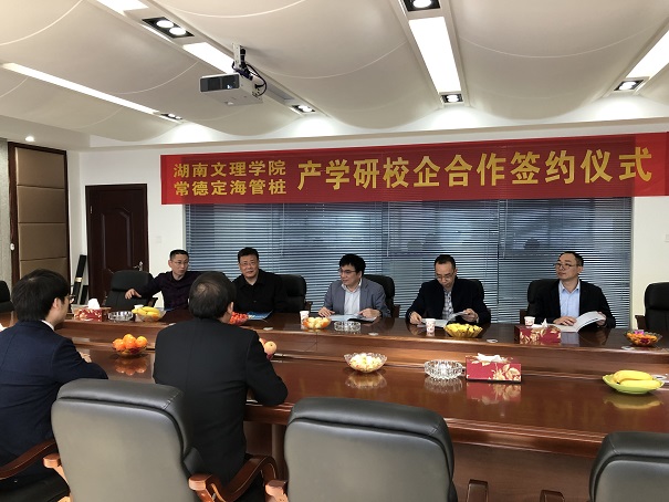 2020年3月,常德定海管樁有限公司與湖南文理學院簽訂產(chǎn)學研合作協(xié)議??偨?jīng)理陳吉果與學院領(lǐng)導(dǎo)現(xiàn)場簽約并授牌。
