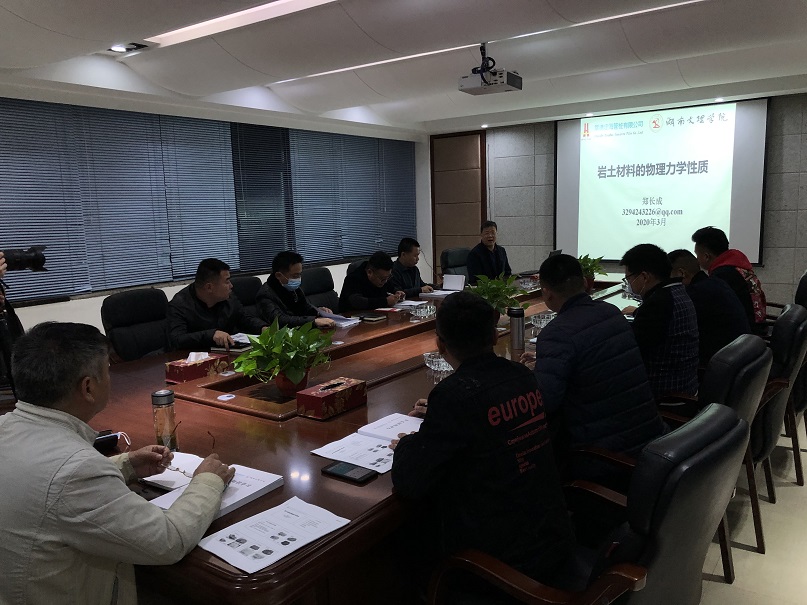 2020年4月,由于疫情原因?qū)е率袌龃蟓h(huán)境波動較大,總經(jīng)理陳吉果審時度勢,積極帶領(lǐng)定海銷售精英們開拓市場,服務(wù)客戶。為了提升專業(yè)水平,站穩(wěn)市場腳跟,公司請來了產(chǎn)學研合作院校湖南文理學院土木工程系鄭長成院長、楊光博士為員工進行專業(yè)知識學習。